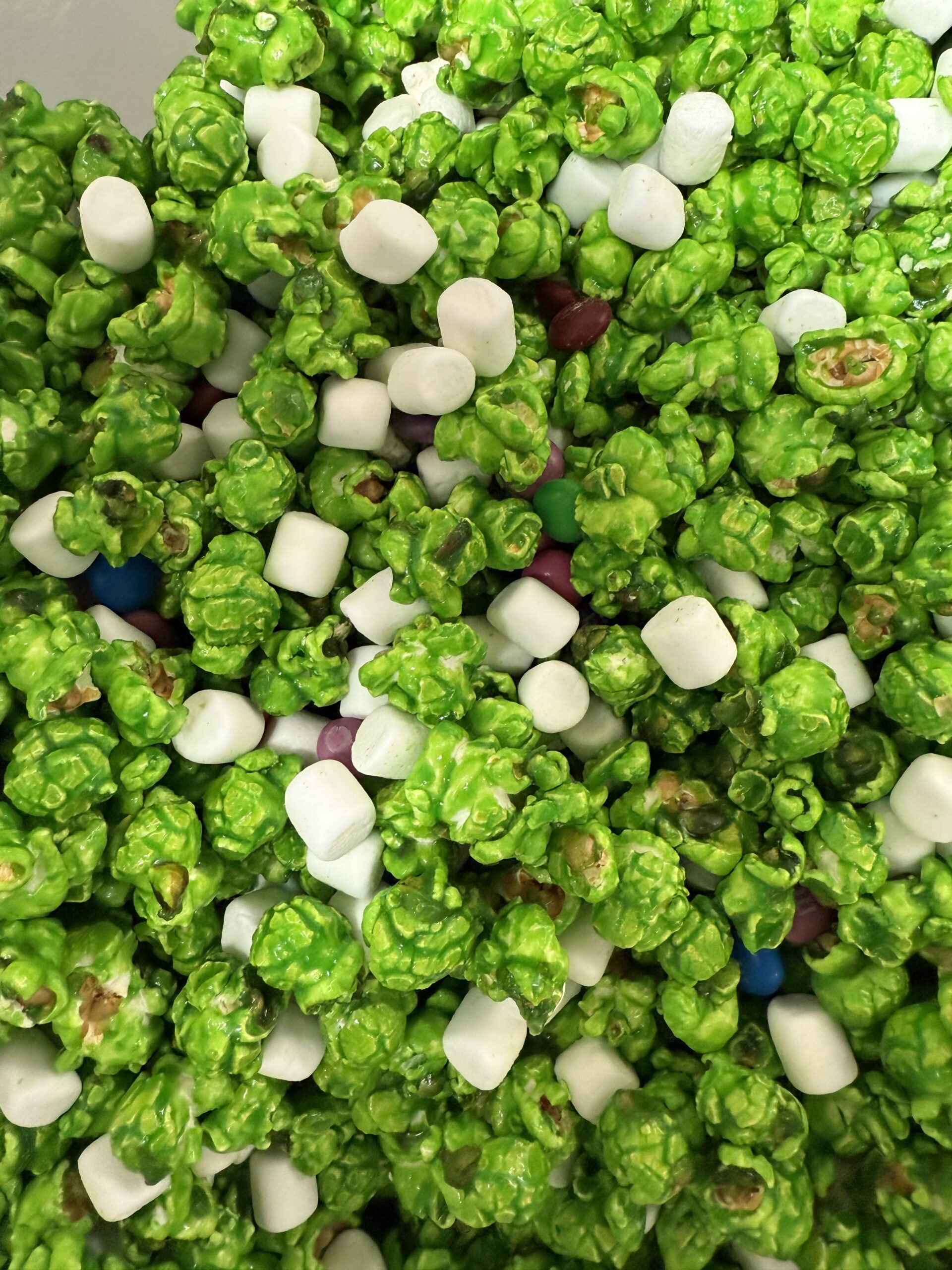 Lemon Lime popcorn, M&Ms, and marshmallows